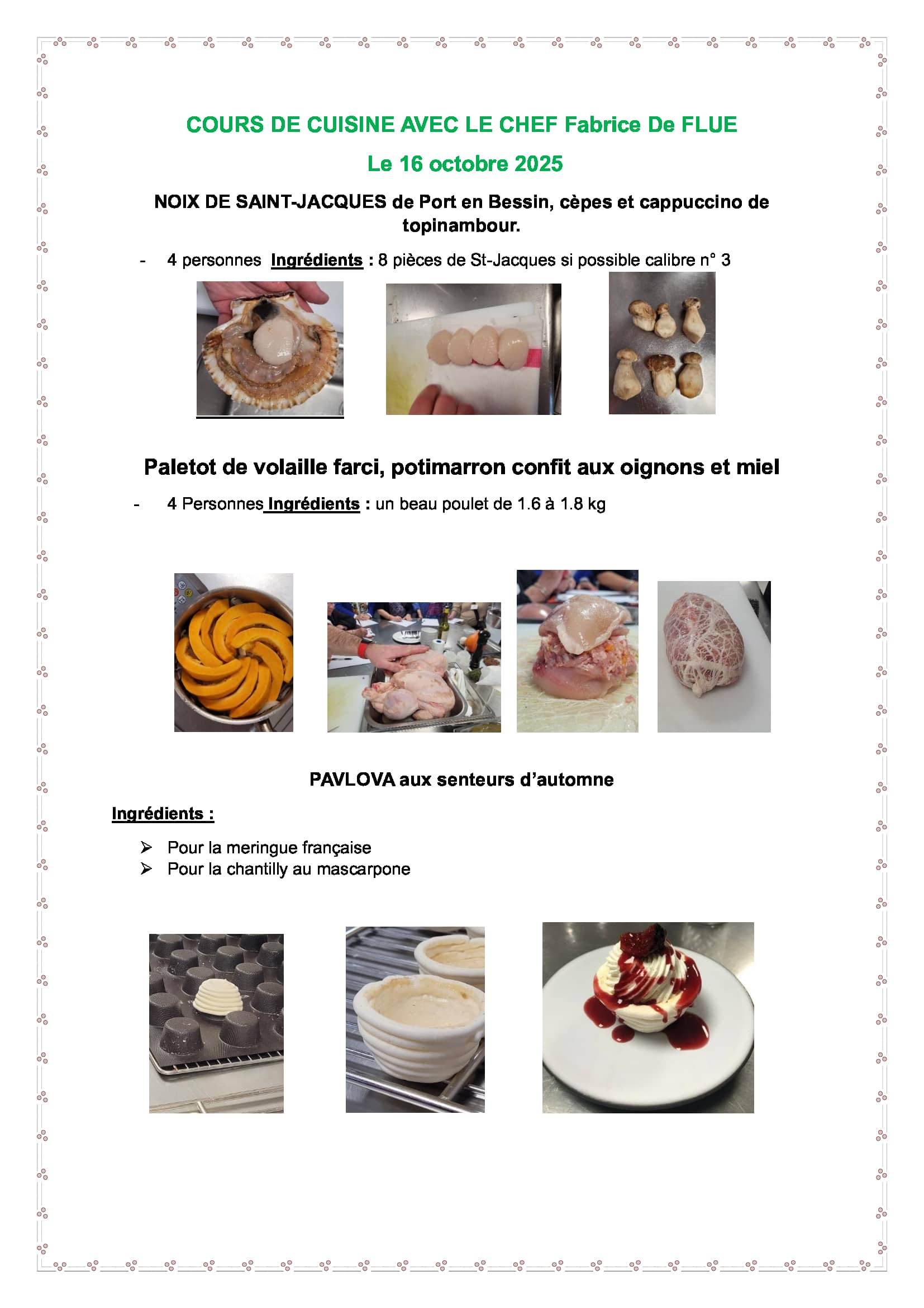 Le chef Fabrice DE FLUE, avec son second Arthur PATER et Yoann HUYS le pâtissier maison nous ont fait passer un après-midi dans la bonne humeur, une belle ambiance et beaucoup de gentillesse pour un cours magistral.